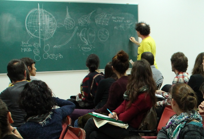 Hicimos una presentación en pizarra, tratando de desarrollar una especie de teoría entre la geometría, la sociología y la biología, más especulativa que rigurosa, que sobre todo quiso ser una aproximación sencilla y propositiva al tema. Aquí la compartimos de forma esquemática.