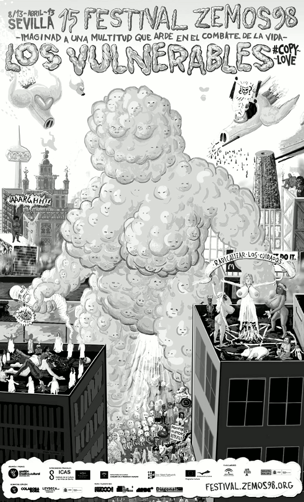 Nos identificamos con la godzilla ciudadana, la multitud que arde en el combate de la vida. Nos sentimos #COPYLOVE, participamos de esta investigación sobre los afectos y cuidados, y queremos compartirlo. Para ello remarcamos este texto que expresa el punto de partida de LOS VULNERABLES, la residencia Copylove que tendrá lugar dentro del 15 festival Zemos98.