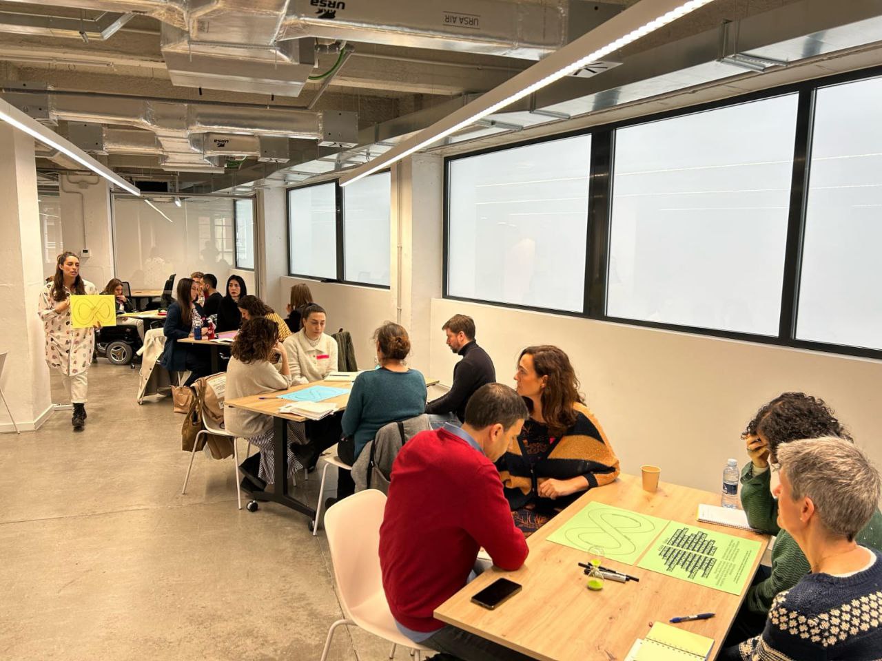 En la acción participativa, las redes de Sareen Sarea trabajaron en grupos sobre tres ejes estratégicos: el reconocimiento del sector, el conocimiento situado del contexto y el fortalecimiento de su capacidad de interlocución y contamos con el apoyo de Ione Ardaiz de Arantzazulab para compartir el marco conceptual de la gobernanza colaborativa.